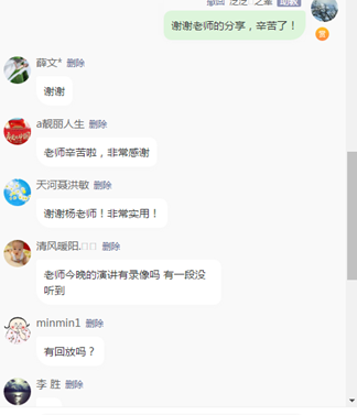 一小时的课程虽然短暂,但杨老师将工作中常用的沟通工具一一分享,让参训学员们受益匪浅,纷纷对老师的专业能力大加赞赏,同时对杨老师的精彩分享表示感谢。
